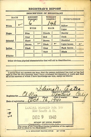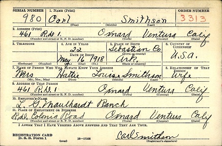 October 16, 1940 Carl registered for the military draft at El Rio,
