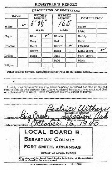 Oct. 16, 1940 Prentiss registered for the draft in Big Creek, Sebastian Co.Ar. On his