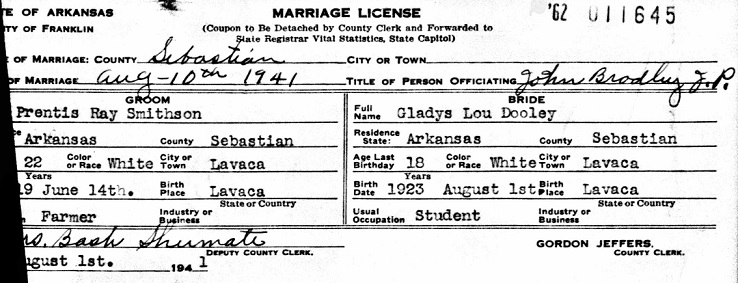 to James Grady & Minne Mae Waller Smithson. On August 10, 1941 Prentiss married