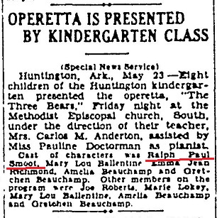 Ralph Paul Smoot passed away June 17, 1923 at Greenwood, Sebastian Co., Ar. with
