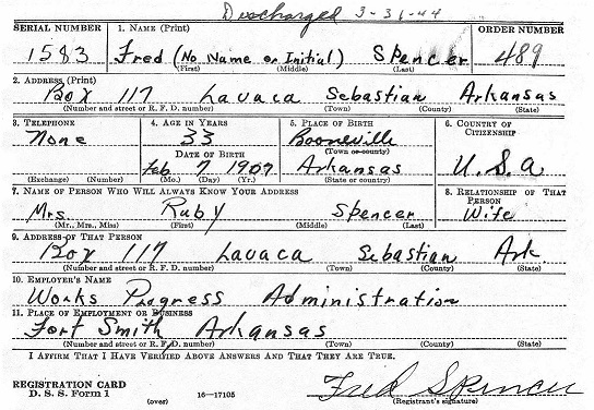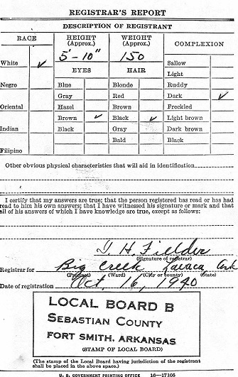 Oct 16, 1940 Fred regestered for the military draft in Big Creek, Lavaca,
