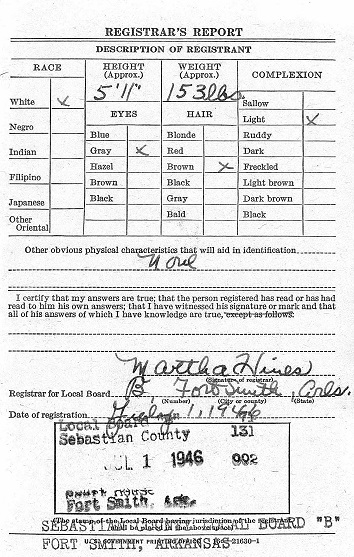 the military draft at Fort Smith, Sebastian Co., Ar. He again was assigned