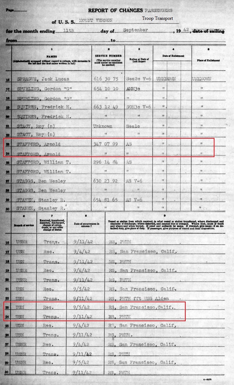 Arnold oringally enlisted in the US Navy July 11, 1942. September 11, 1942 he