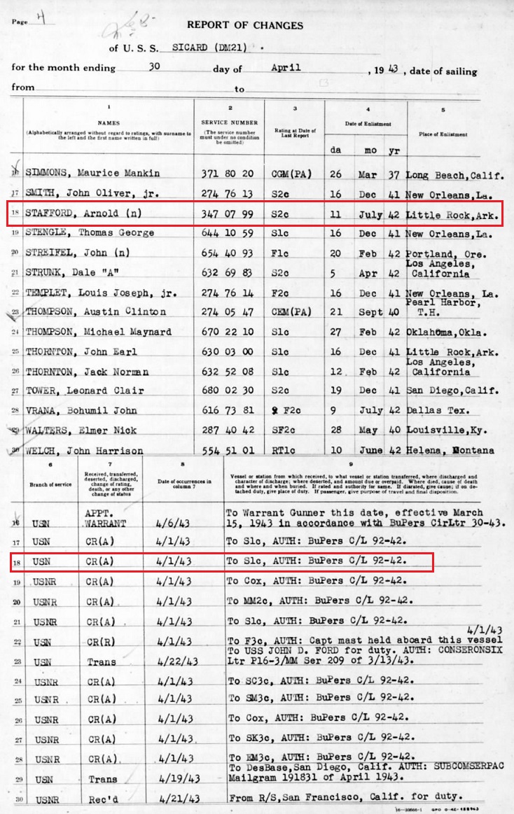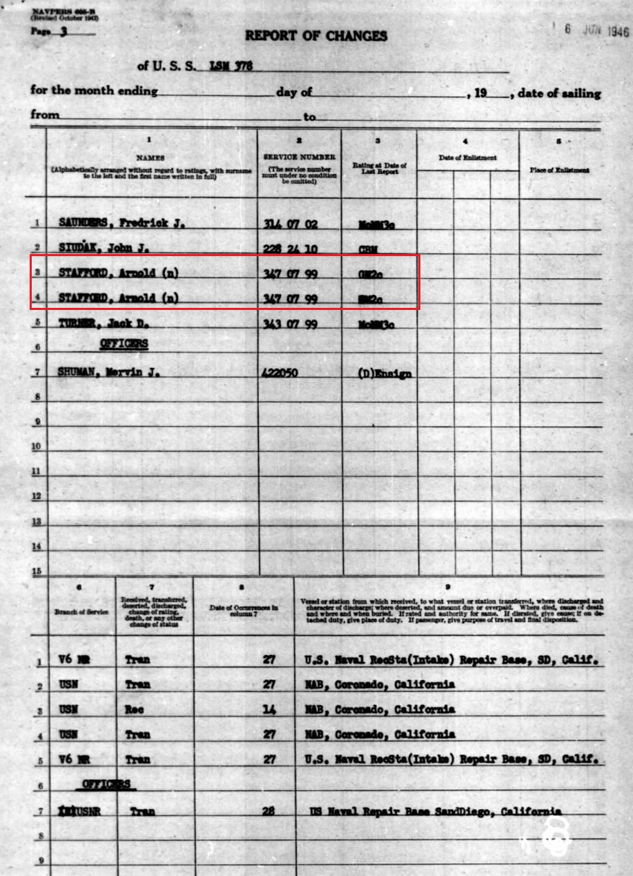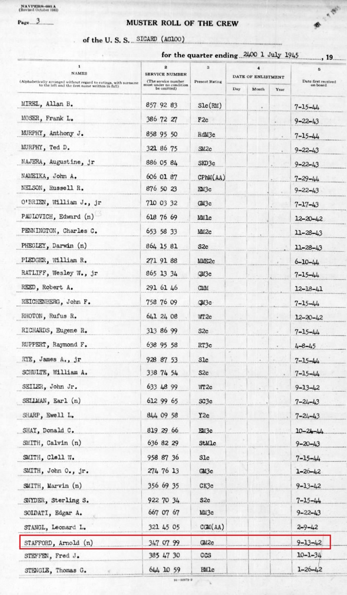 the USS Sicard. July 1, 1946 Arnold registered for his second tour in