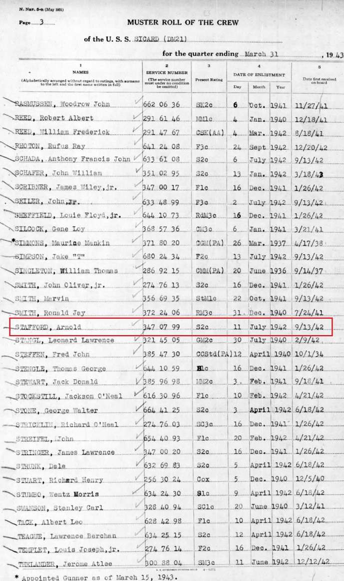 to the USS Sicard. His rank was Gm2 or Gunner's Mate Second Class.