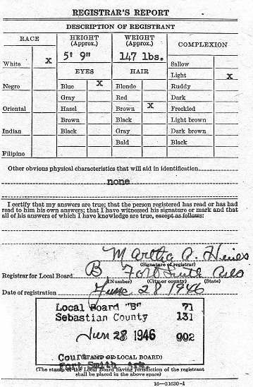 June 28, 1946 Warren again registered for the military draft at Fort Smith,