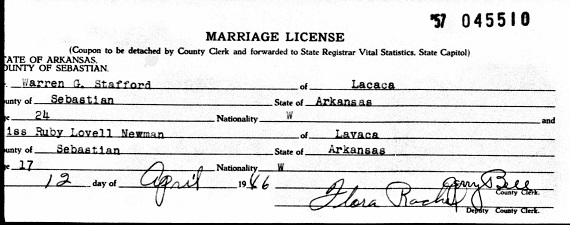 married Ruby Lavell Newman, both being residents of Lavaca, Arkansas.