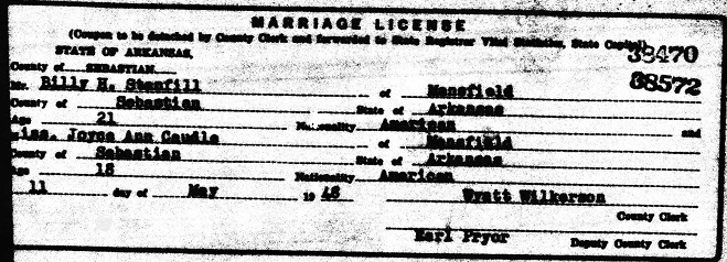 James Lee & Willie Alene Cross Stanfill. May 16, 1948 he married Joyce Ann