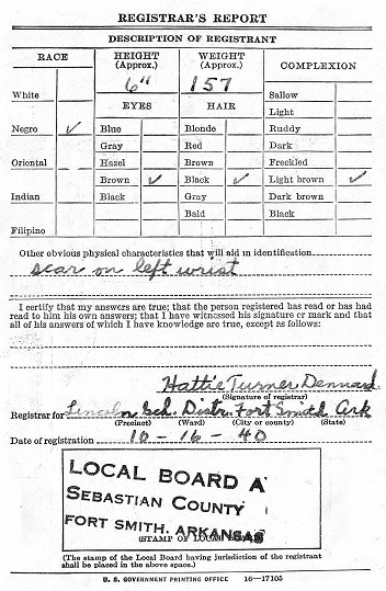 October 16, 1940 Ted Registered for the military draft in Fort Smith, Ar at the