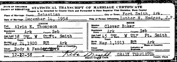 they divorced at Sebastian Co., Ar. December 14, 1958 Alvin married