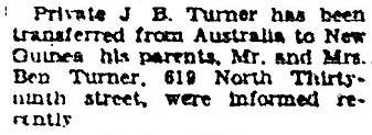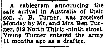 Private Turner was the son of Mr. and Mrs. Ben Turner, 619 [sic] North Thirty-Ninth