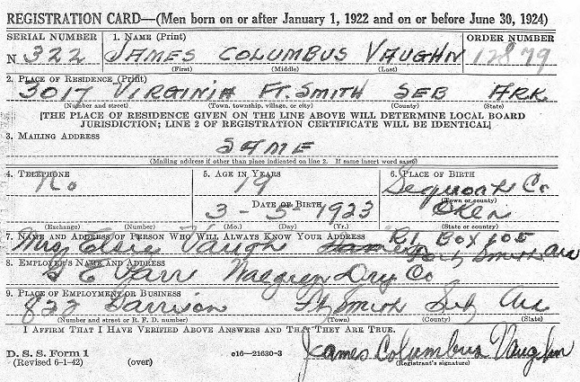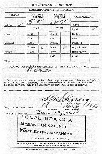 J.C. registered for the military draft June 30, 1942 at Sebastian