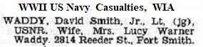 during WWII. His rank was Lt. (jg) when he was wounded in the line of duty.