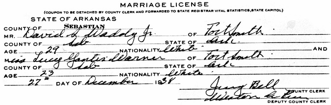 to David Smith Sr. & Grace Dorothy Lowry Waddy. December 28, 1938 David married