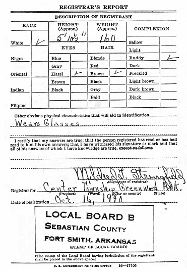 Henry registered for the military draft October 16, 1940 at Greenwood, Sebastian Co.