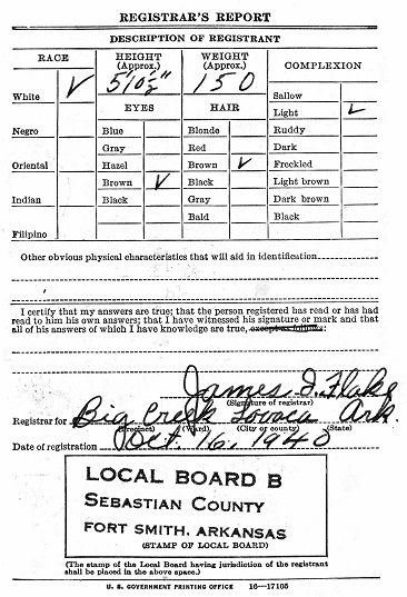 October 16, 1940 Roy registered for the military draft at Lavaca, Big Creek