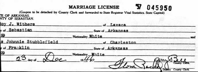 December 26, 1946 Roy married Johnnie Leona Stubblefield of Charleston,