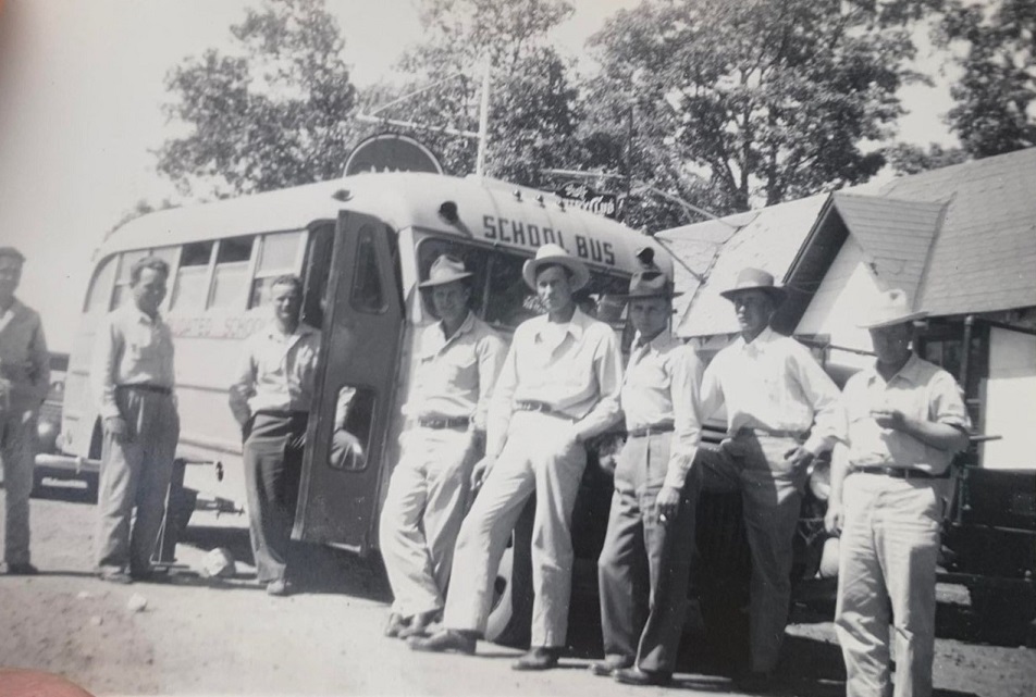 Bus taking Roy and other men off to training