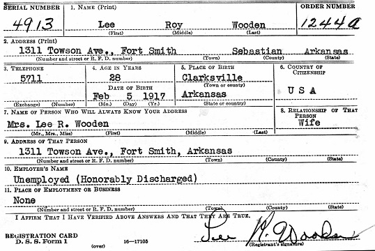 July 17, 1945 Lee Roy registered for the military draft at Fort Smith,
