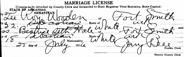 married Beatrice Seth Hale in Fort Smith, Ar where they both resided. They