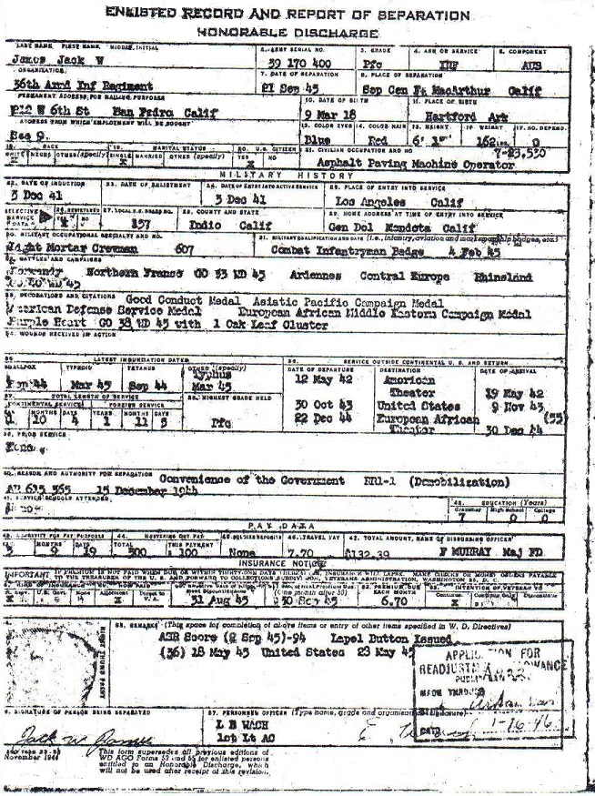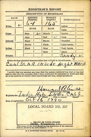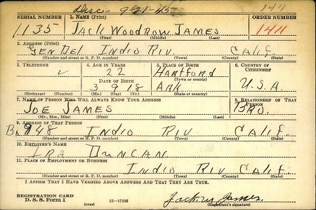 October 16, 1940 Jack registered for the military draft at Indio Hgts, Indio, Riverside Co., California.