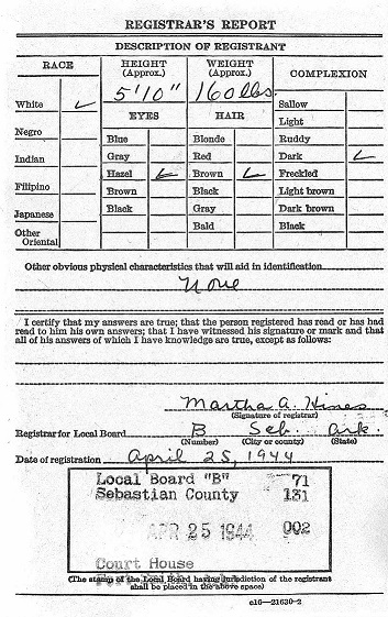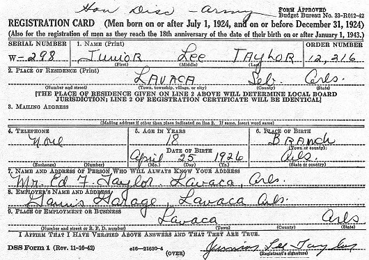 On April 24, 1944 Junior registered for the military draft at the court house in