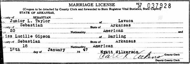 to Big Creek Twsp, Sebastian Co., Ar. On the 18th of Jan 1947 Junior married