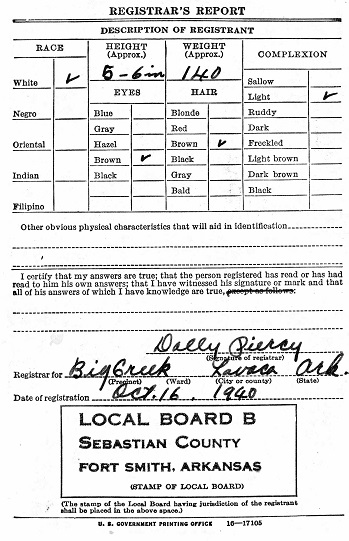 On Oct 16, 1940 Luther registered for the draft at Fort Smith, Sebastian Co. Ar.