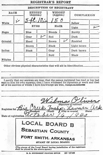 October 16, 1940 Bernard registered for the military draft at Big Creek, Twsp, Lavaca,