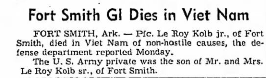 Leroy Kolb, Jr was born October 26, 1944 at Fort Smith, Sebastian Co., Ar.