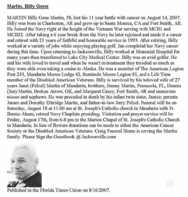 Billy Gene Martin 1948 - 2007