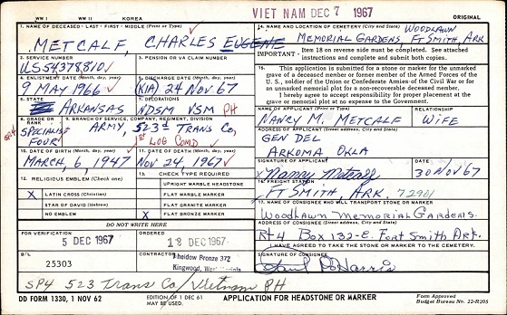 Charles was buried in Woodlawn Memorial Park at Fort Smith,