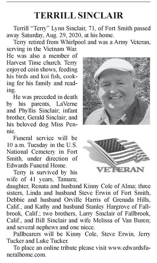 Terrill "Terry" Lynn Sinclair 1949 - 2020