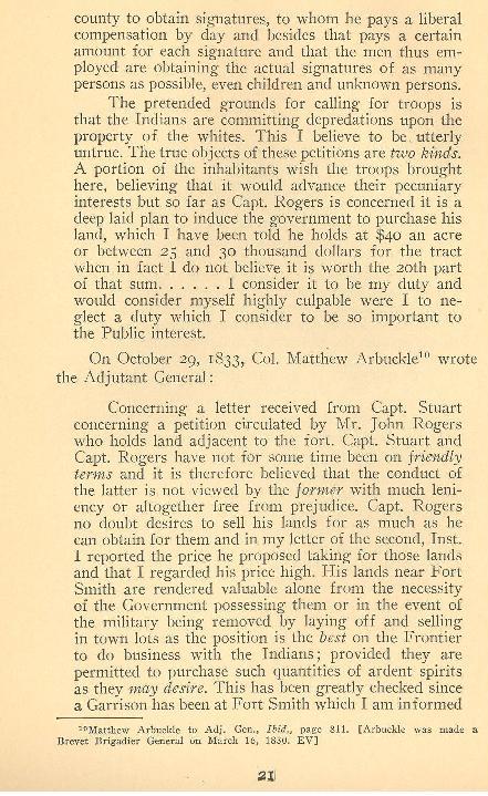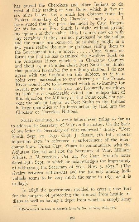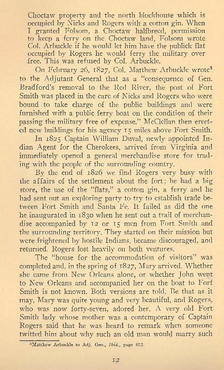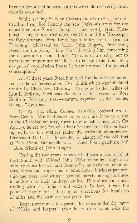 "Since he arrived at Belle Point, 1822, and served as Military Storekeeper for the Seventh Regiment under Colonel Matthew Arbuckle,