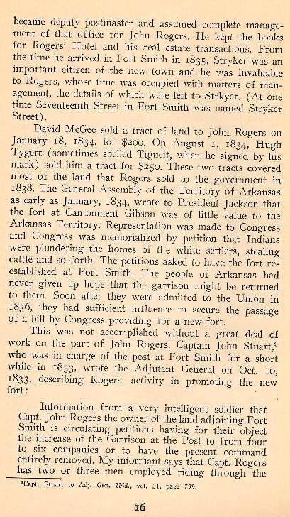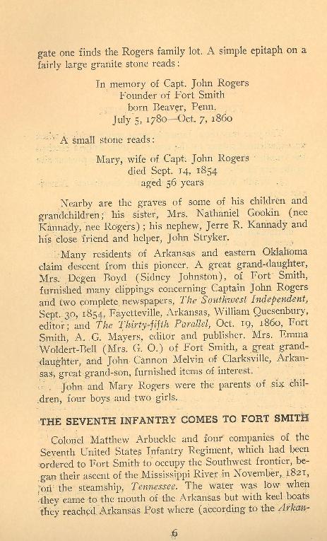 Sebastian County Surnames found in the booklet: Gookin, Kannady, Stryker, Arbuckle, Bradford, Bonneville, Nicks,