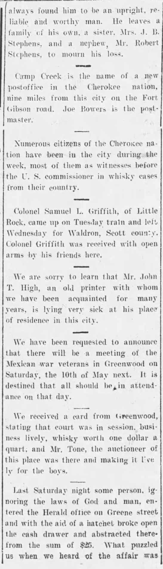 Stephens, Bowers, Griffith, High, Tone, Gallagher, Brown, Harris, Reynolds, Childers, Barnes,