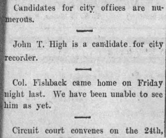 names mentioned: High, Fishback, Rogers, Tobey, Carnall, Brooks, Dickens, McConnell,