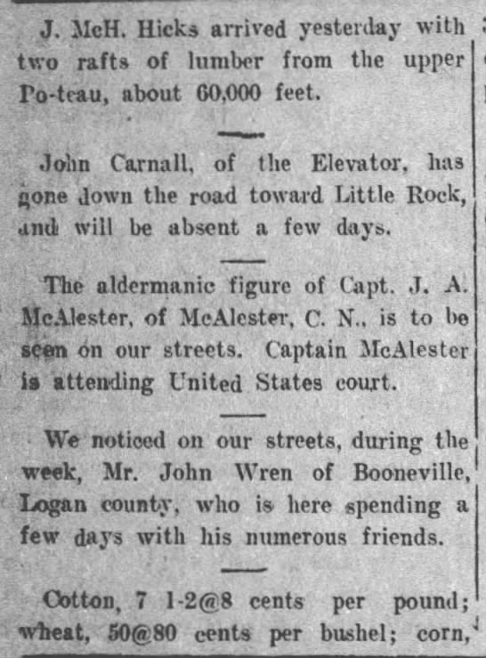 names mentioned: McHicks, Carnall, McAlestr, Wren, Baer, Dickens, Smythe,