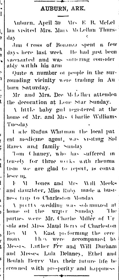 McLellan, Cross,Williams, Whitman, Raney, Chaney, Jones, Meeks, Miller?, Berry, East, Fry, Durham, Delaney