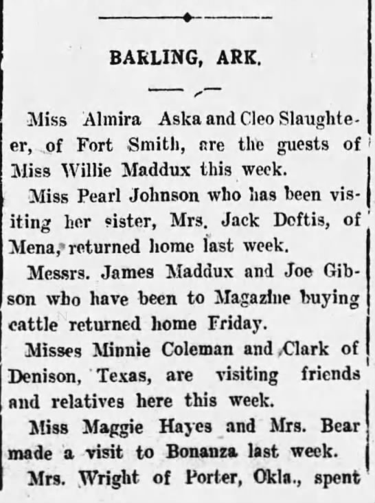 Aska, Slaugher, Maddux, Johnson, Doftis, Gibson, Coleman, Clark, Hayes, Bear, Wright, Golden, Hopkins
