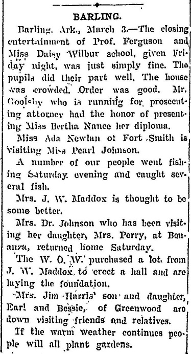 Ferguson, Wilbur, Goolsby, Nance, Newlan, Johnson, Maddox, , Perry, Harris