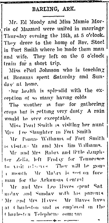 Moody, Morris, Steel, Johnson, Smith, Slaughter, Williams, Babry, Mabry, Hayes