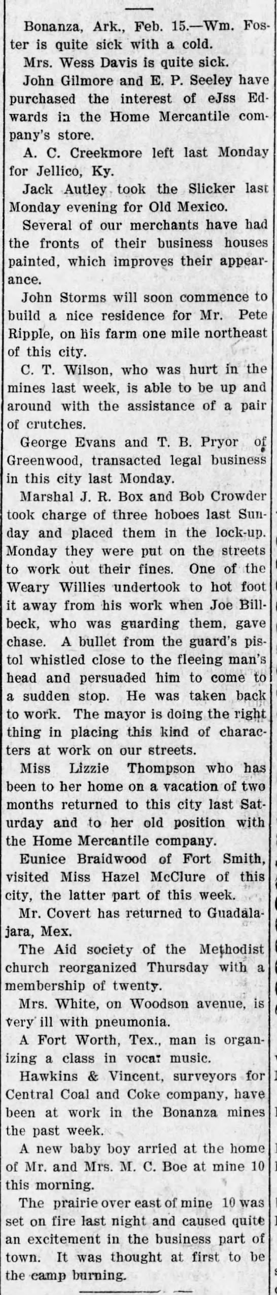 Foster, Davis, Gilmore, Seeley, Edwards, Creekmore, Autley, Storms, Ripple, Wilson, Evans, Pryor, Box, Crowder, Billbeck, Thompson, Braidwood, McClure, Covert, White, Hawkins, Vincent, Boe