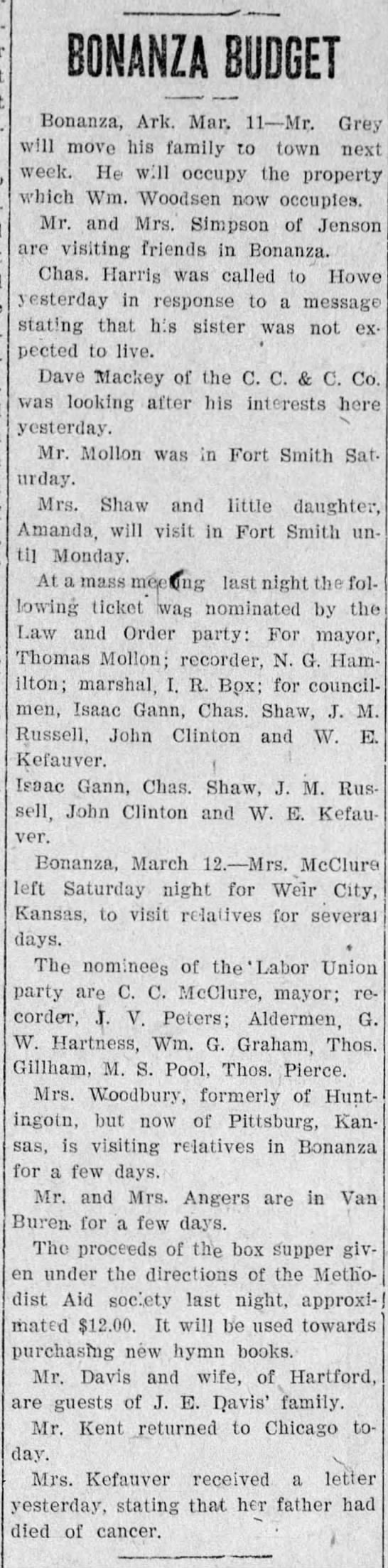names mentioned: Grey, Simpson, Harris, Mackey, Mollon, Shaw, Hamilton, Box, Gann, Shaw,