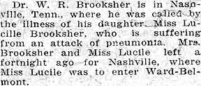 Daughter Lucille Ill with Pneumonia at Ward-Belmont School