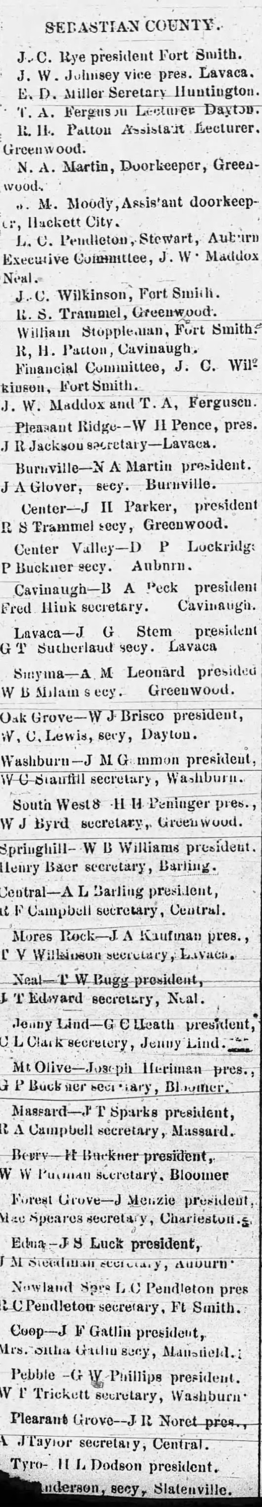 Moody, Pendleton, Wilkinson, Trammel, Stoppleman, Patton, Wilkinson, Maddox, Fergusen, Pence, Jackson,