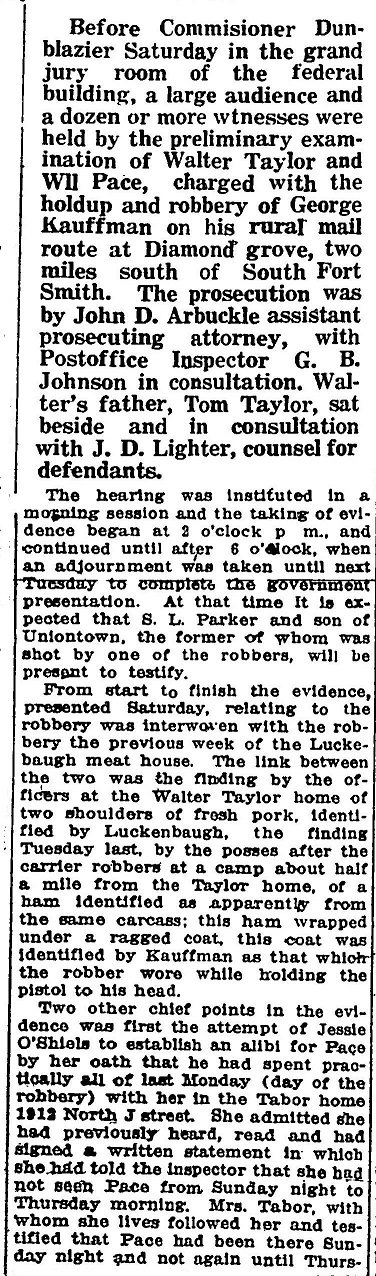 names mentioned: Dunblazier, Taylor, Pace, Kauffman, Arbuckle, Johnson, Lighter, Parker,
