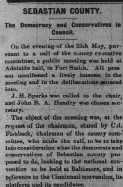 Names mentioned: J.H.Sparks, John R.A. Hendry, Col Fishback