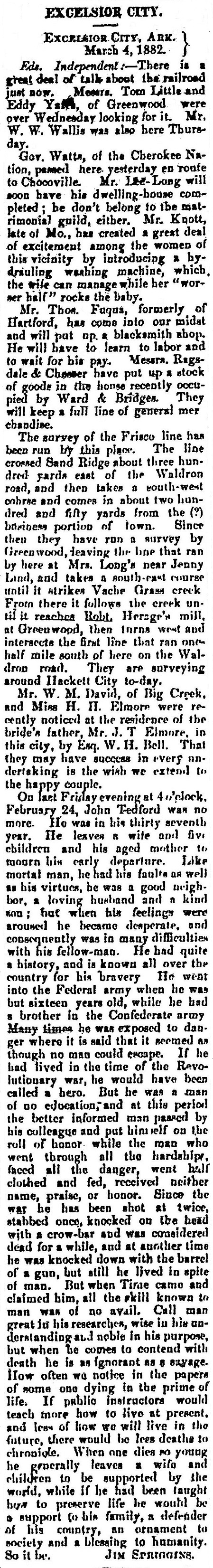 Little, Yates?, Wallis, Watts, Long, Knott, Ruqus, Ragsdale, Cheeser?, Ward, Bridges, Long, Hersge?, Daid, Elmore, Bell, Redford, Spriggins