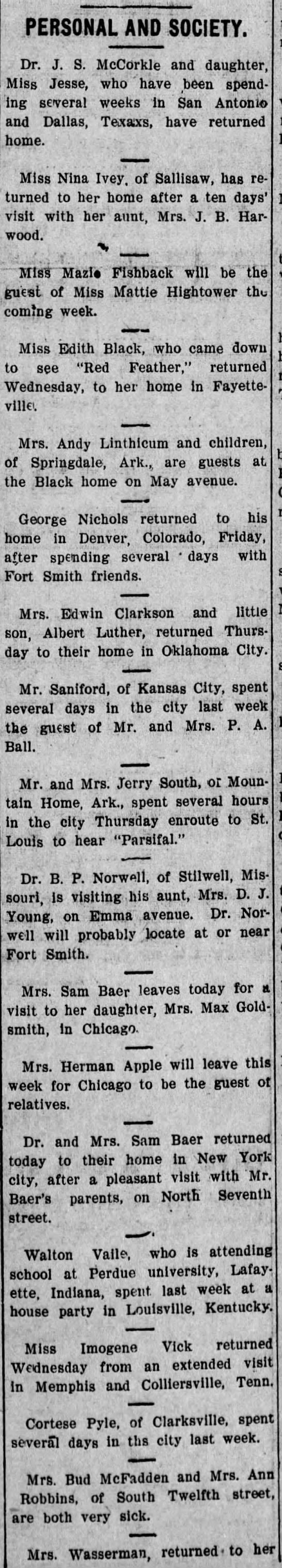 names mentioned: McCorkle, Ivey, Harwood, Fishback, Hightower, Black, Linthicum,